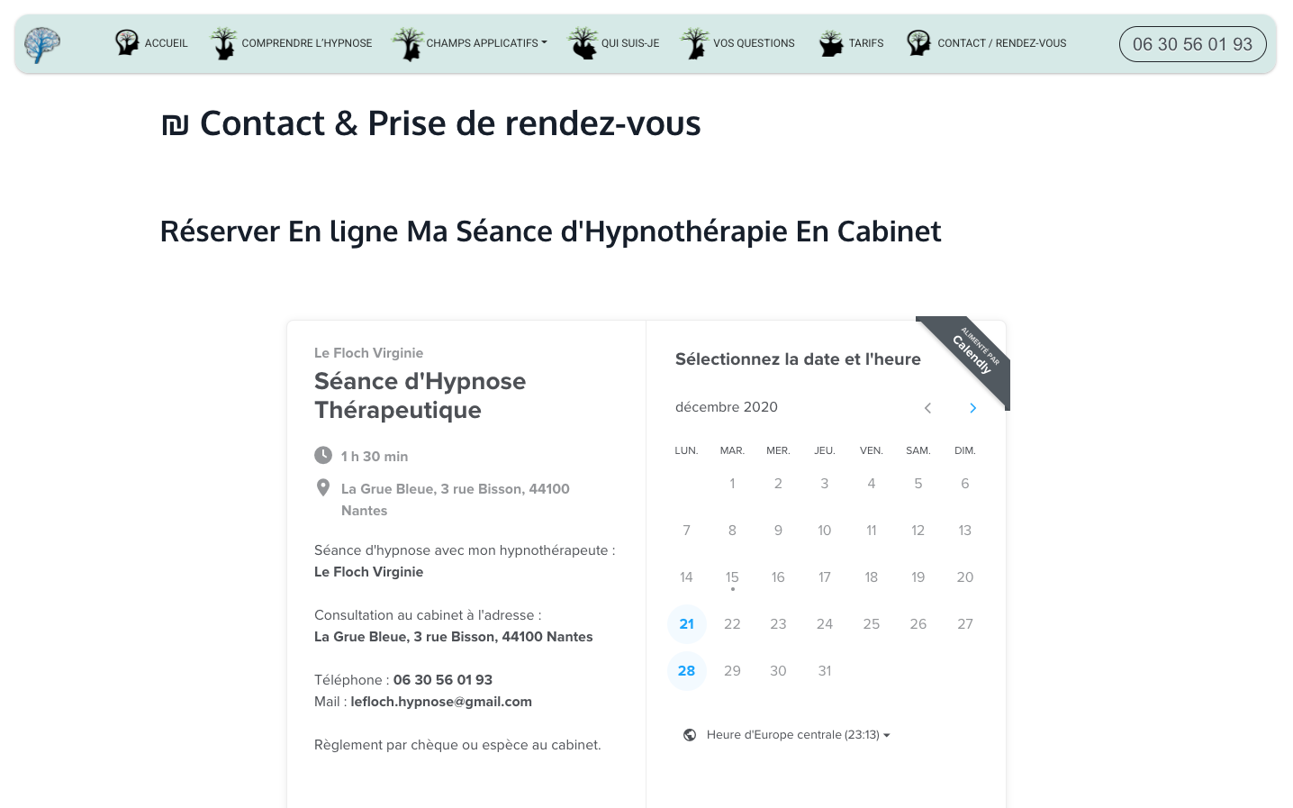 En effet, en début d'activité on a pas ou peu de clients et c'est normal. La question est d'apporter un maximum de valeur ajouté à son savoir faire et apporter un maximum de confiance à ses clients potentiels. Proposer des prises de rendez-vous en ligne c'est aussi indiquer à ses clients/concurrents son agenda. Donc peu de clients, beaucoup de disponibilités. Beaucoup de disponibilités, moin de confiance pour les clients. Mais niveau simplicité et ergonomie c'est le TOP d'avoir du booking simpliste avec alerte par mail. J'ai donc quand même ajouté le module calendly ( sous réserve ).
