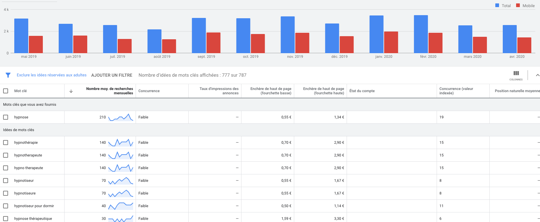 L'outil de planification des mots clés dans Google Ads est un des outils indispensables pour obtenir le volume de recherche par les internautes ainsi que les enchères au CPC